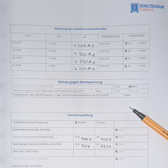 Unsere Schaltschränke werden nach IEC / EN 61439-1 gebaut und geprüft. Unsere Mitarbeiter nutzen hierzu vordefinierte Protokolle und Abläufe.